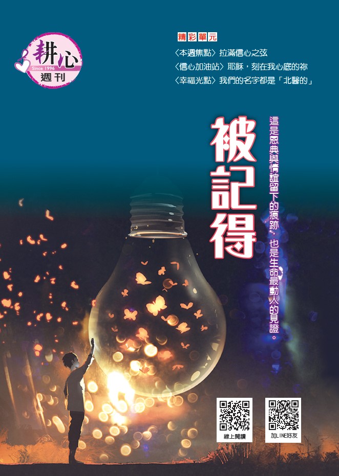 - 邀請你成為福音的使者,將《耕心》分享給生命遇見低潮的親友;深信上帝會透過「文字」對人說話及施行拯救。