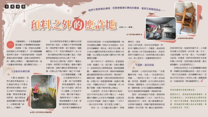 至於那天蟑螂傾巢而出的原因更直接,汙水池控制電盤故障,抽水馬達無法運轉,因此汙水未能抽出,住在其中的蟑螂便一齊出走。我忍不住自嘲,老公尚未為醫院和屏東民眾做出什麼偉大的貢獻,自己倒是先為這棟大樓的住戶做了最實際的貢獻。